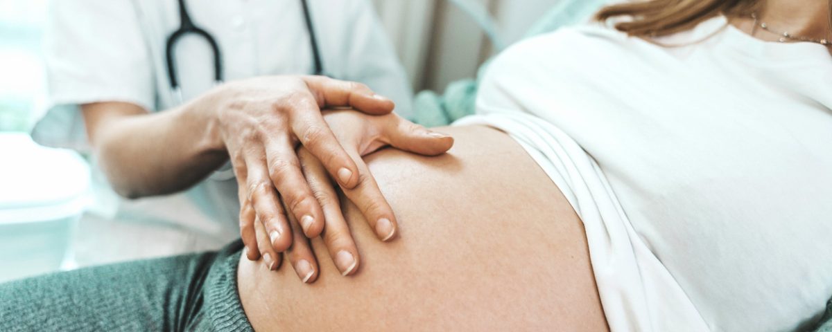 Young pregnant woman with doctor in clinic - Gynecology consultation, medical check-up, maternity and ob-gyn support concept